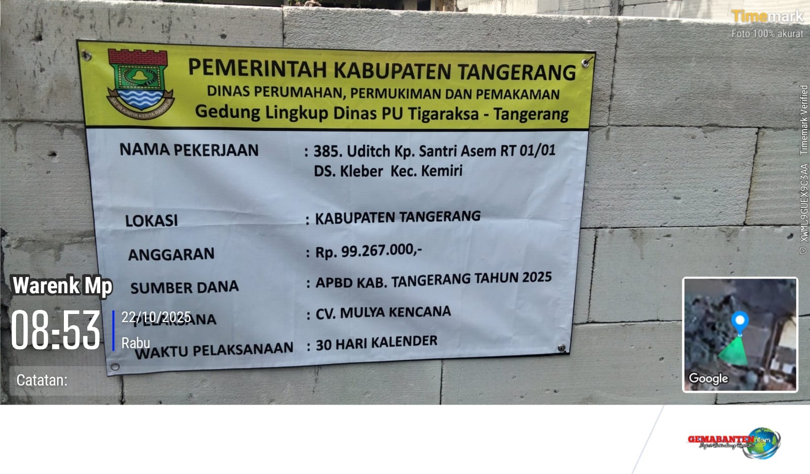 Tintaindonesia.id, Tangerang — Proyek pemasangan udith di Kampung Santri Asem, Desa Klebet, Kecamatan Kemiri, Kabupaten Tangerang, yang dikerjakan oleh CV Mulya Kencana dengan anggaran Rp99.267.000 bersumber dari APBD Kabupaten Tangerang Tahun 2025, menuai sorotan publik. Proyek dari Dinas Perumahan, Permukiman, dan Pemakaman (Perkim) itu diduga dikerjakan tidak sesuai dengan spesifikasi teknis.
