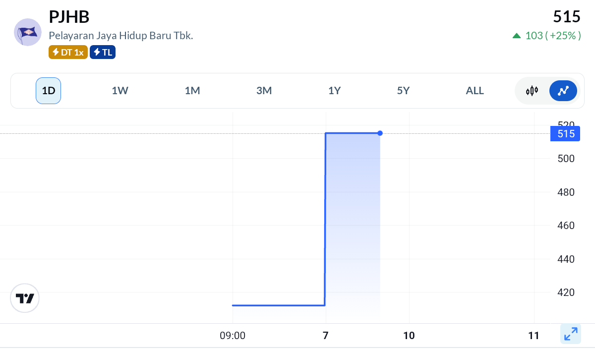 Tintaindonesia.id, Jakarta — Saham dari perusahaan logistik pelayaran Pelayaran Jaya Hidup Baru Tbk (kode saham PJHB) kembali mencetak lonjakan harga pada hari kedua pencatatannya di Bursa Efek Indonesia (BEI) — Jumat, 7 November 2025. Saham tersebut mencapai batas auto-reject atas (ARA) setelah naik sekitar 25 persen dari hari sebelumnya, menyentuh level Rp 515 per saham.