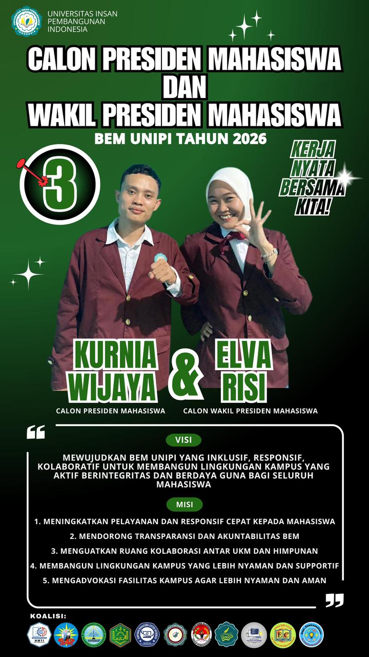 Terpilihnya pasangan Kurnia Wijaya dan Elva Risi bukan sekadar kemenangan elektoral, melainkan manifestasi kepercayaan kolektif mahasiswa terhadap visi, gagasan, dan komitmen perubahan yang mereka tawarkan. Dukungan luas dari berbagai elemen organisasi kemahasiswaan mulai dari HMAK, HMTI, HMSE, HMSI, PEALIP, D’OLIP, HIMAKIP, Kewirausahaan, KSPM, LDK Arroyan, hingga English Club yang tergabung dalam koalisi 03, menjadi indikator kuat bahwa pasangan ini dinilai mampu menyatukan semangat kolaborasi lintas organisasi dan kepentingan.
