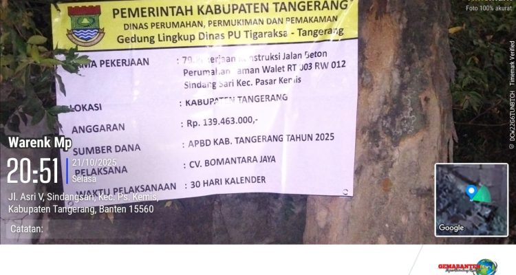Tintaindonesia.id, Kabupaten Tangerang — Kegiatan proyek betonisasi milik Dinas Perumahan, Pemakaman, dan